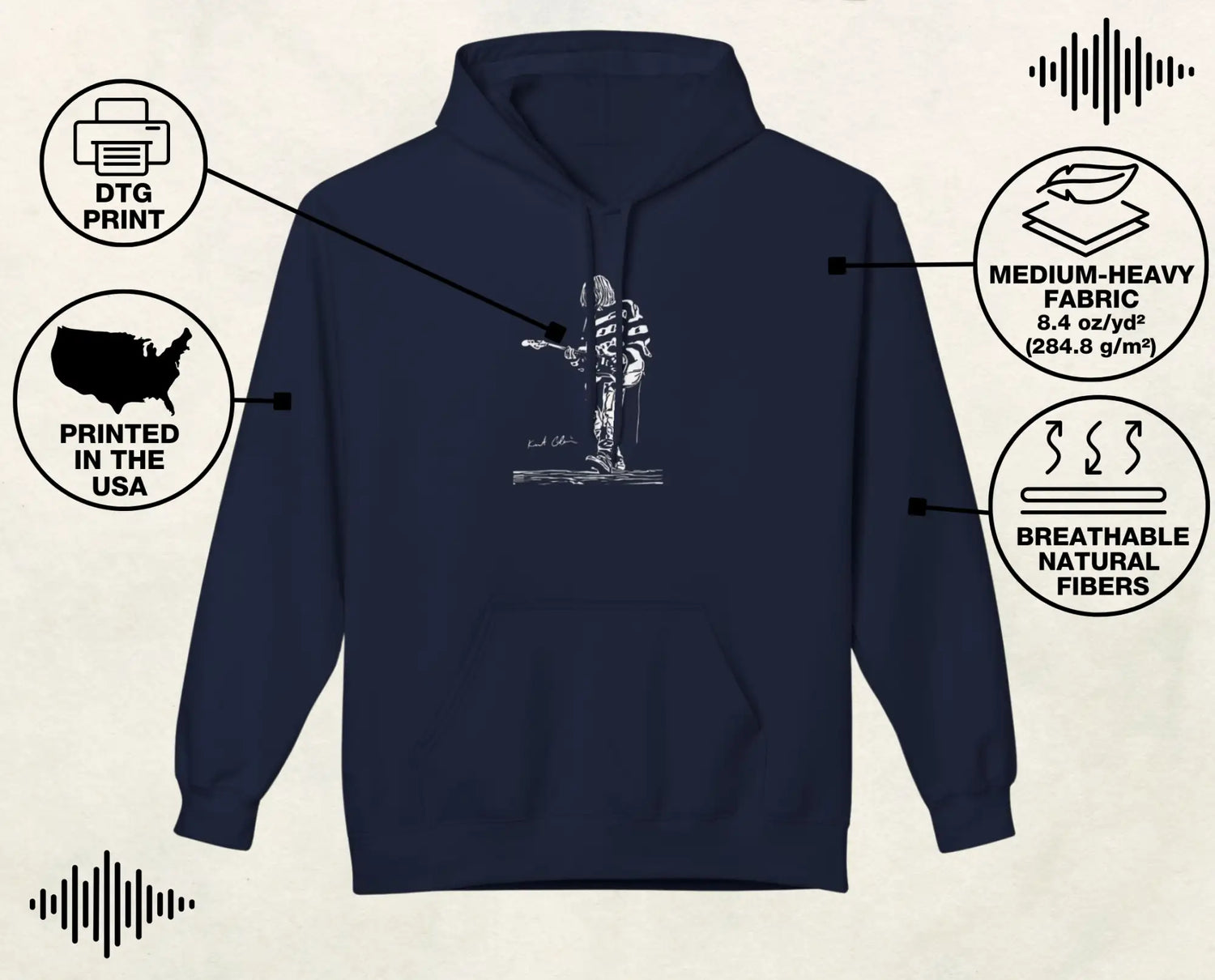 Our hoodie takes that soft, broken-in tee feel and turns it into all-day warmth. Mid-weight, cotton-rich fleece—smooth outside, brushed soft inside—perfect for gigs, studio nights, and weekend vinyl spins.